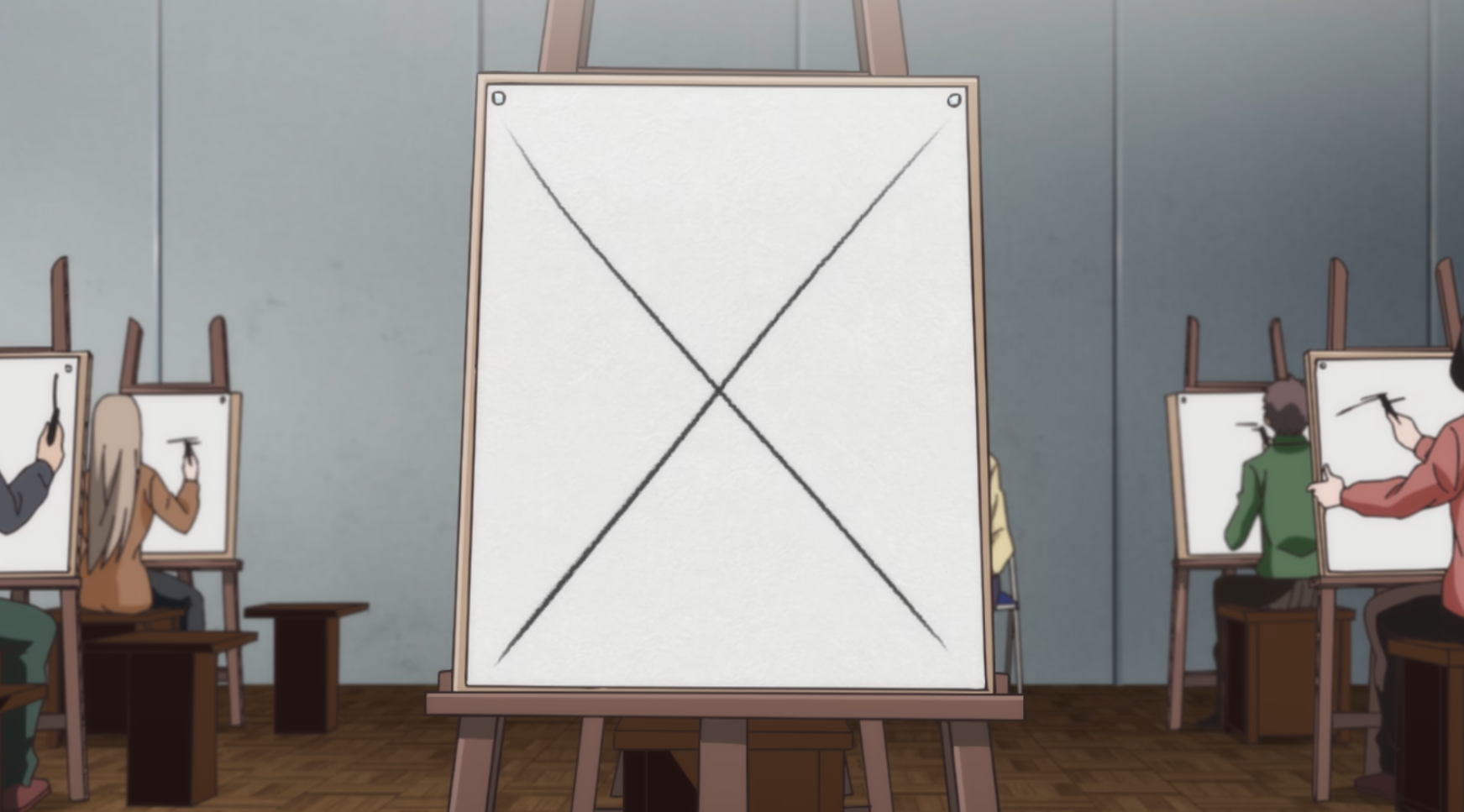 As the story arc resolves, Yatora and Ryuji are positioned on opposite sides of a privacy screen drawing nude self portraits. Yatora is turning his artistic gaze inward for the first time. He finds it both disquieting and illuminating; describing his body as pitiable and likens it to a hairy eraser. Ryuji, struggling with rejection by their family and their own gender identity, initially refuses to do a portrait despite having suggested it as a source of growth. Their physical nudity is juxtaposed with emotional vulnerability as the pair share their respective motivations, anxieties and identities. It's a perfect encapsulation of how the series deftly interweaves the struggle to grow as an artist and as a person as if they're two sides of the same coin — because they are.